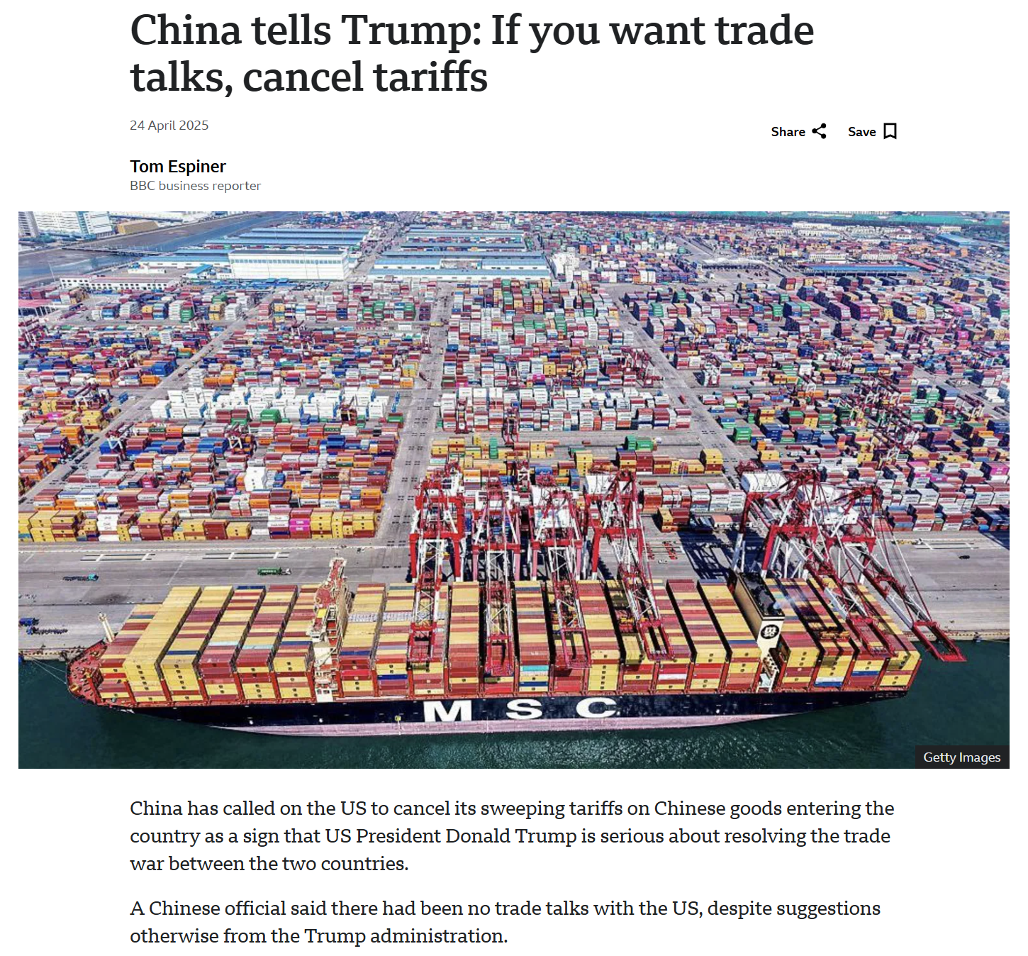 On the same day it admitted it was evaluating American offer to talk about trade but reiterated its demand that the US should first remove its unilateral tariffs before anything could be discussed.