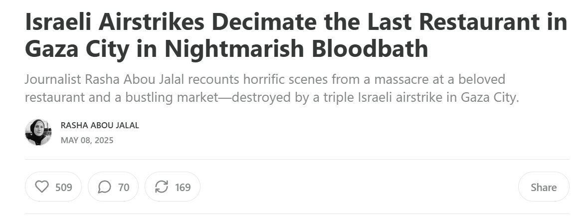 This place was actually bombed by IDF in May, when pro-Palestinian outlets decried it as destruction of the last functioning restaurant in Gaza: