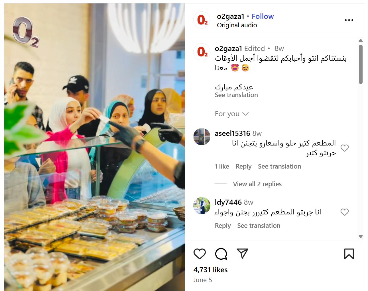 How would you fancy some dessert for a change? Here's O2, a patisserie / ice cream shop in Gaza City in its update from June: