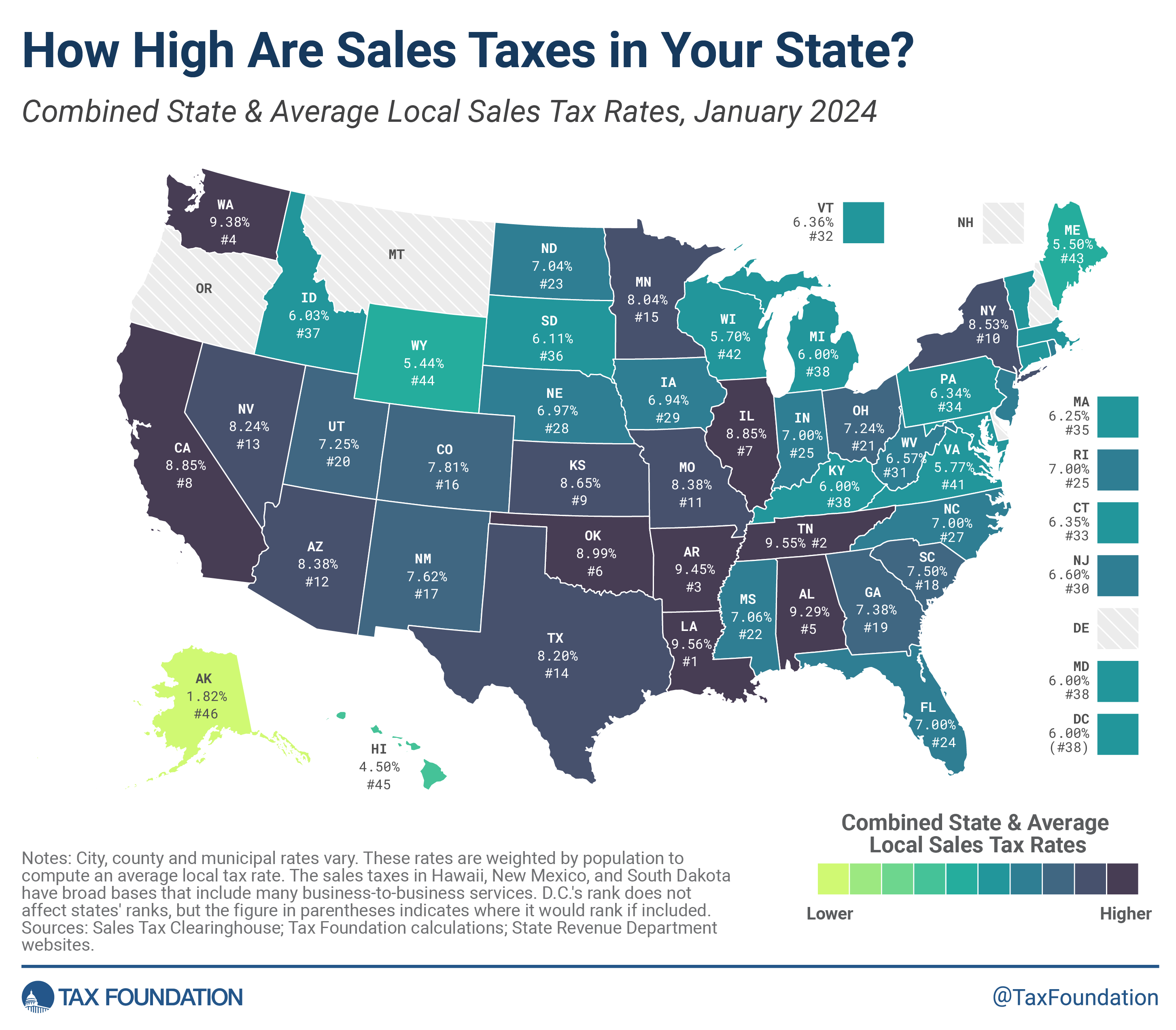 Unlike most other countries, USA doesn't have a nationwide sales tax, just relatively small rates on a local and state level of ca. 5 to 10 percent, depending on the location.