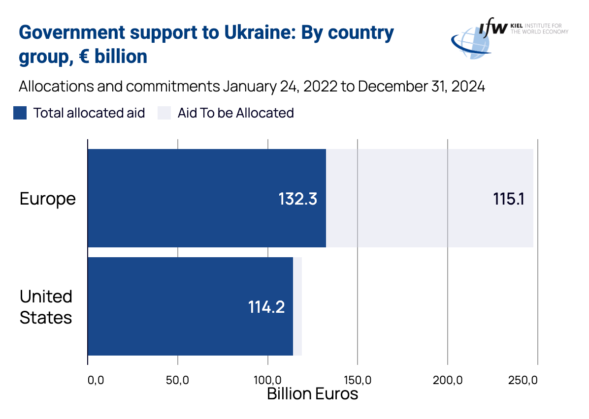 And the numbers show that not only has Europe disbursed and pledged far more aid to Ukraine that the US, but the nature of American help – being mainly military – means that most of the billions it spent have gone to... American companies manufacturing equipment and ammunition used in the war, contributing to their profits and domestic employment (ironically, things that the MAGA Republicans profess to care deeply about).
