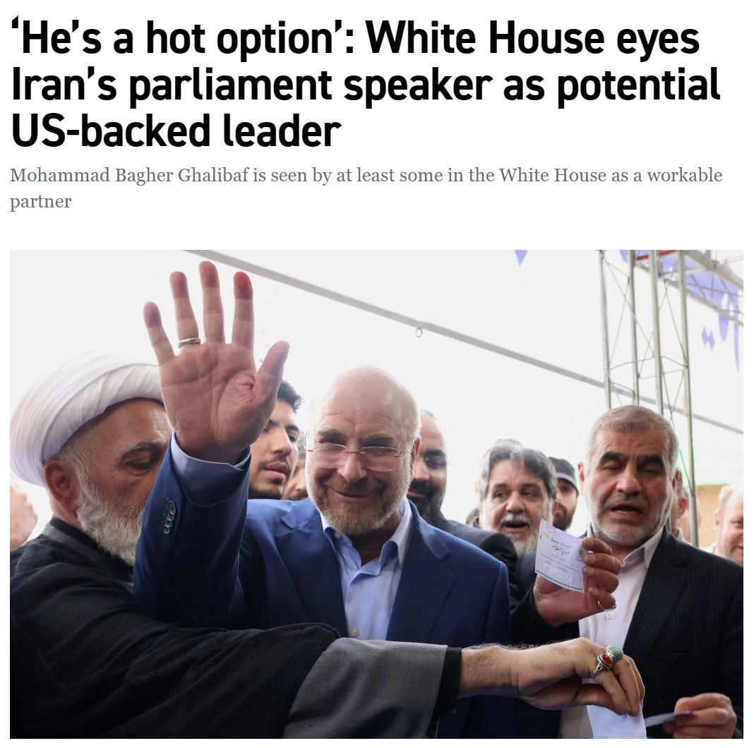 It seems that Trump may have finally found a candidate in the country's parliament's speaker, Mohammad Bagher Ghalibaf.