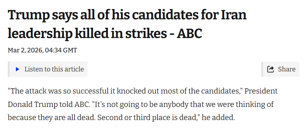 He has also signalled multiple times that he was looking for someone from within Iranian political scene to talk to, but the strikes were so devastating that all the candidates that Washington had in mind were dead.