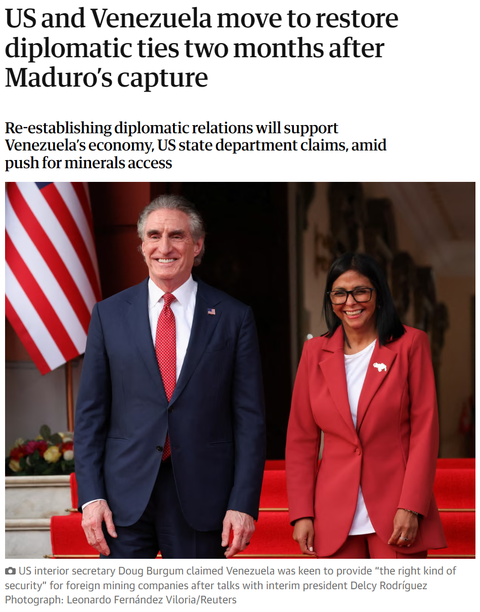 Initially she acted defiantly, demanding that the US immediately releases Nicolas Maduro and his wife. But it was likely all for show as within weeks she started distancing herself from her former boss and both countries restored bilateral relations earlier this month, with the reopening of the US embassy in the country.