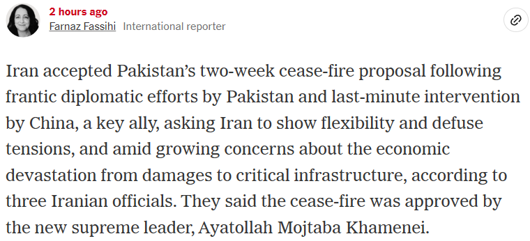 Right before another deadline, which was due to expire at 8PM EST on Tuesday, Donald Trump announced a two-week ceasefire agreement with the Iranian regime, brokered by Pakistan with a last-minute intervention by China: