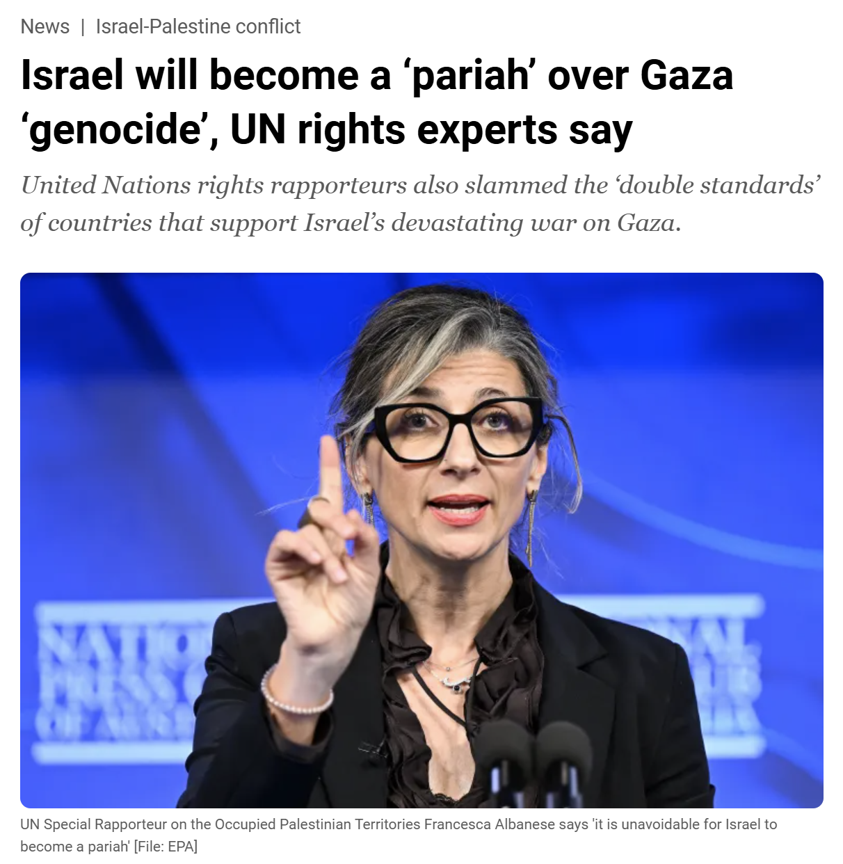 Others are saying that Israel is risking becoming a pariah, an outcast, isolated by the world for its allegedly violent conduct vs. Palestinians.